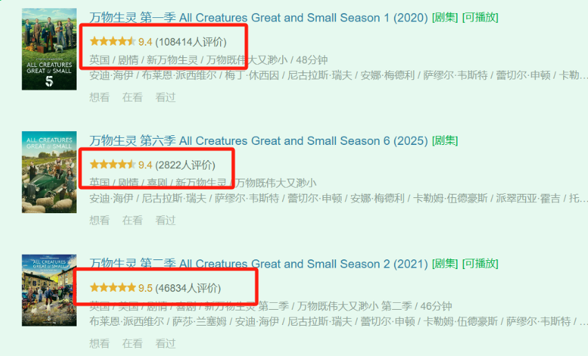 豆瓣评分一路高歌猛进,每季都9分+