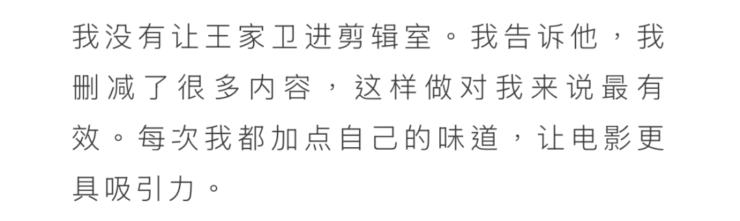 可以说,王家卫识人善任,有超越一般人的审美判断和掌控力,但也不必过分神化他个人的才华。