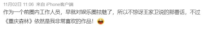 但仍有不少影迷表示,这件事并不影响他们对《花样年华》《阿飞正传》《重庆森林》等经典作品的喜爱。